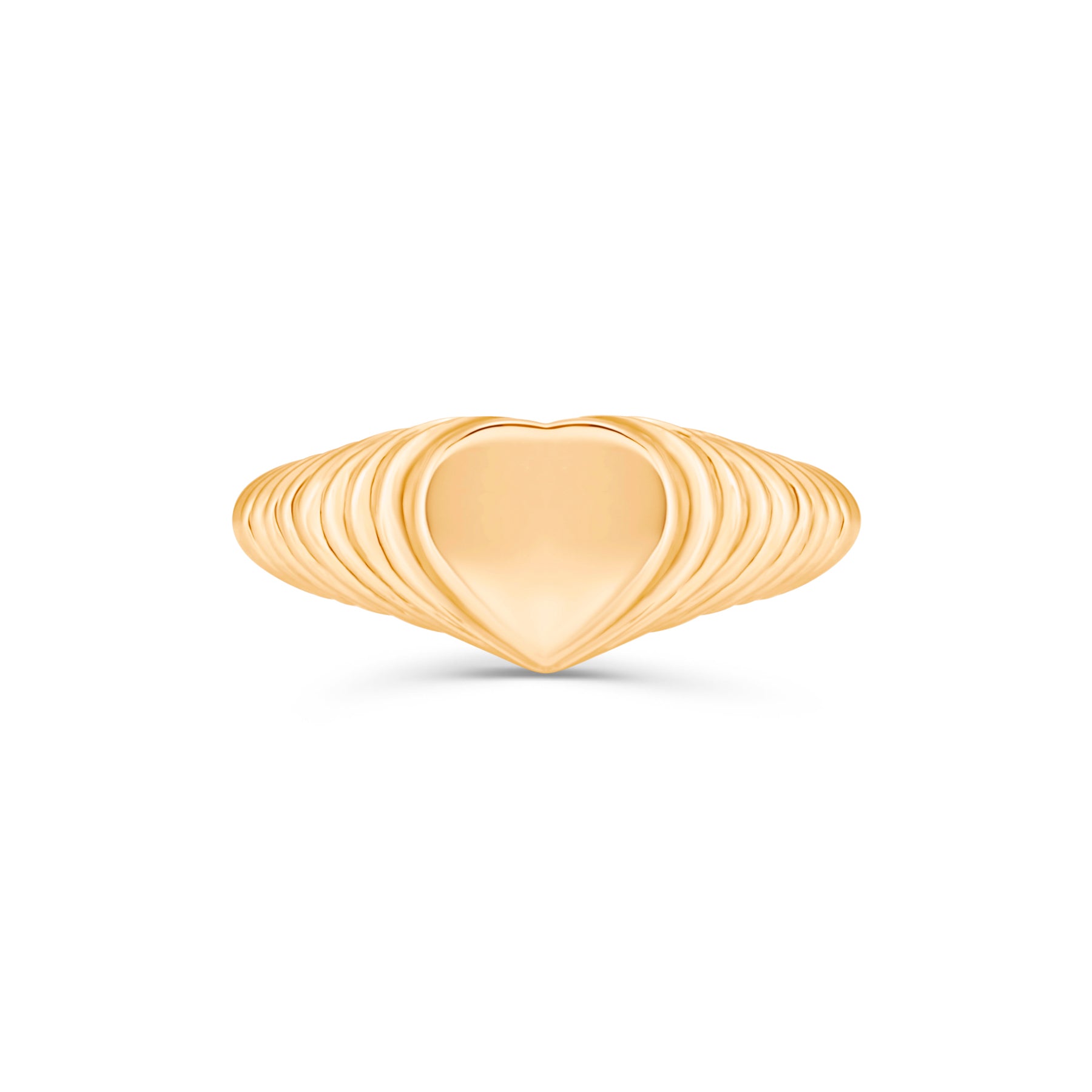 A bold silhouette with nothing to prove. Our Gold Heart Signet Ring is crafted entirely in solid gold - no diamonds, no distractions - because sometimes, that’s all you need.