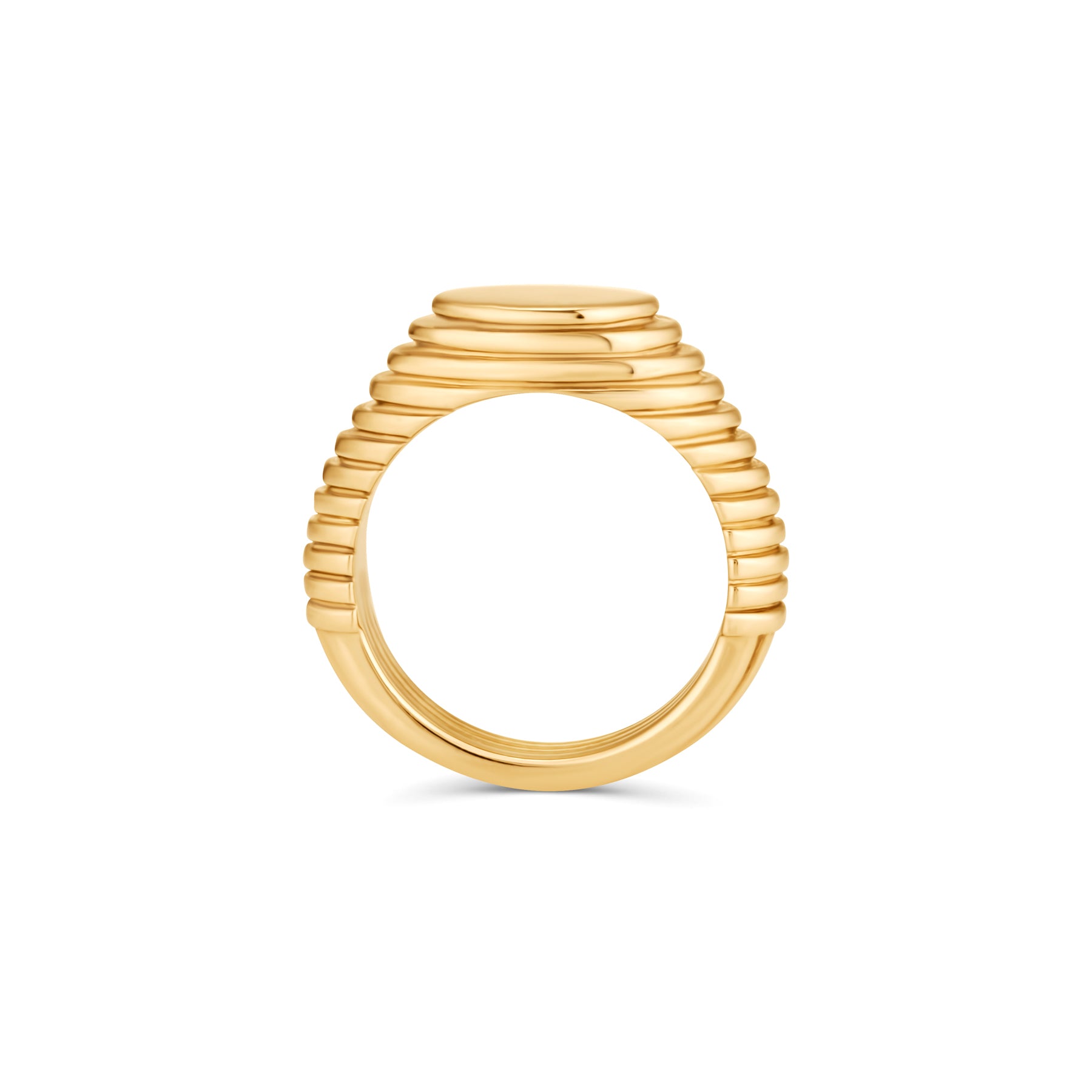 Sculptural and unapologetically sleek, this 9ct Yellow Gold ring is proof that less really is more. Featuring an east-west oval face, the design is left intentionally unadorned because sometimes, all you need is gold.