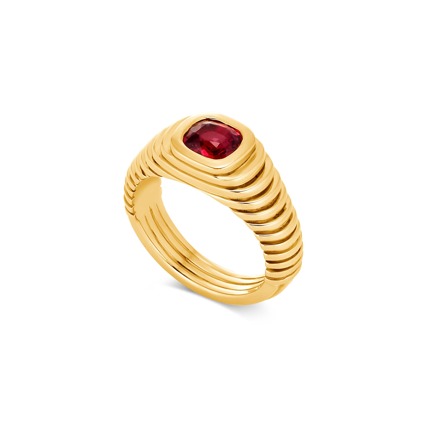 The Contessa Pinkie in Red Spinel is a celebration of passion and presence. The cushion cut brings softness to its vivid crimson hue, balancing strength with refinement. It’s a piece that doesn’t whisper, it resonates.