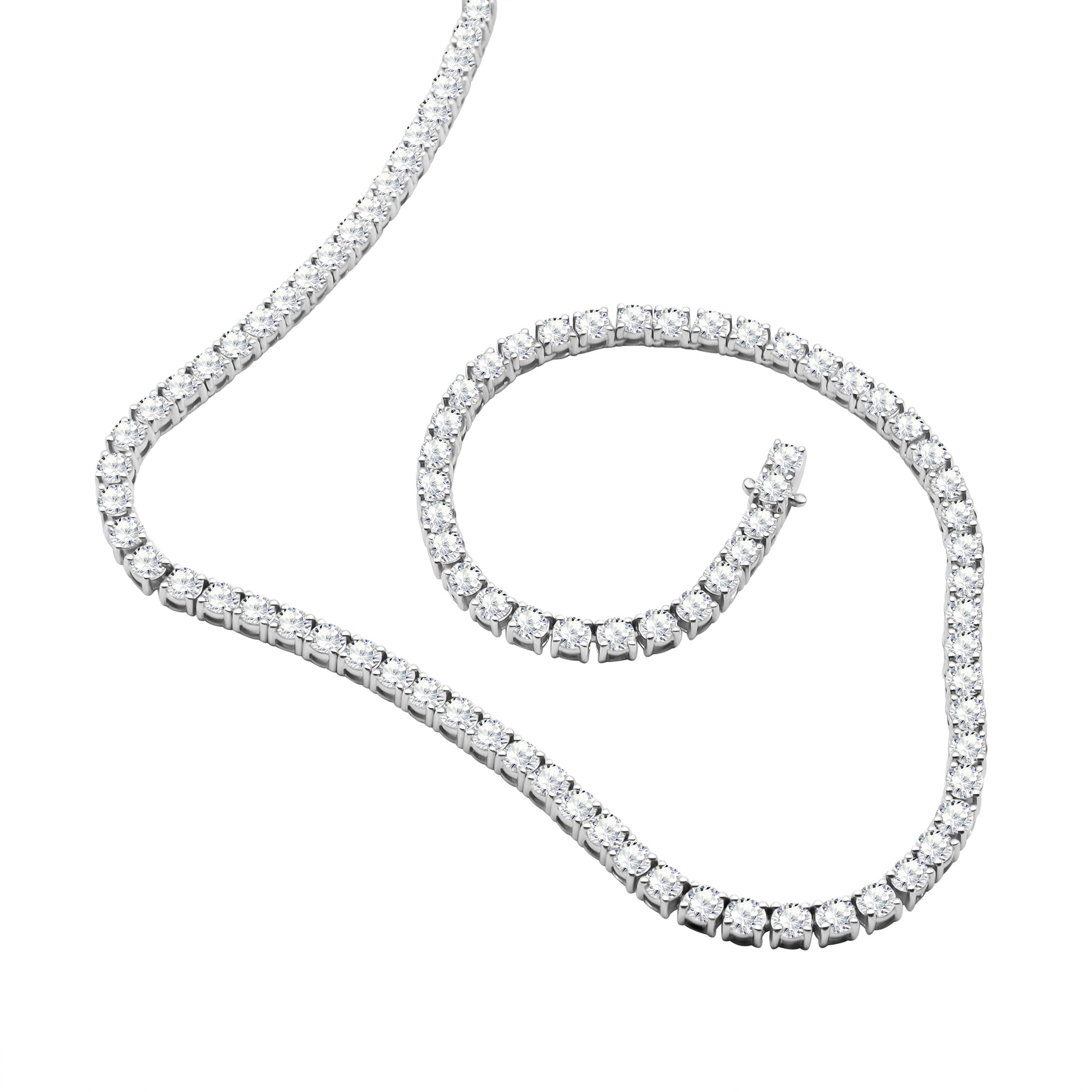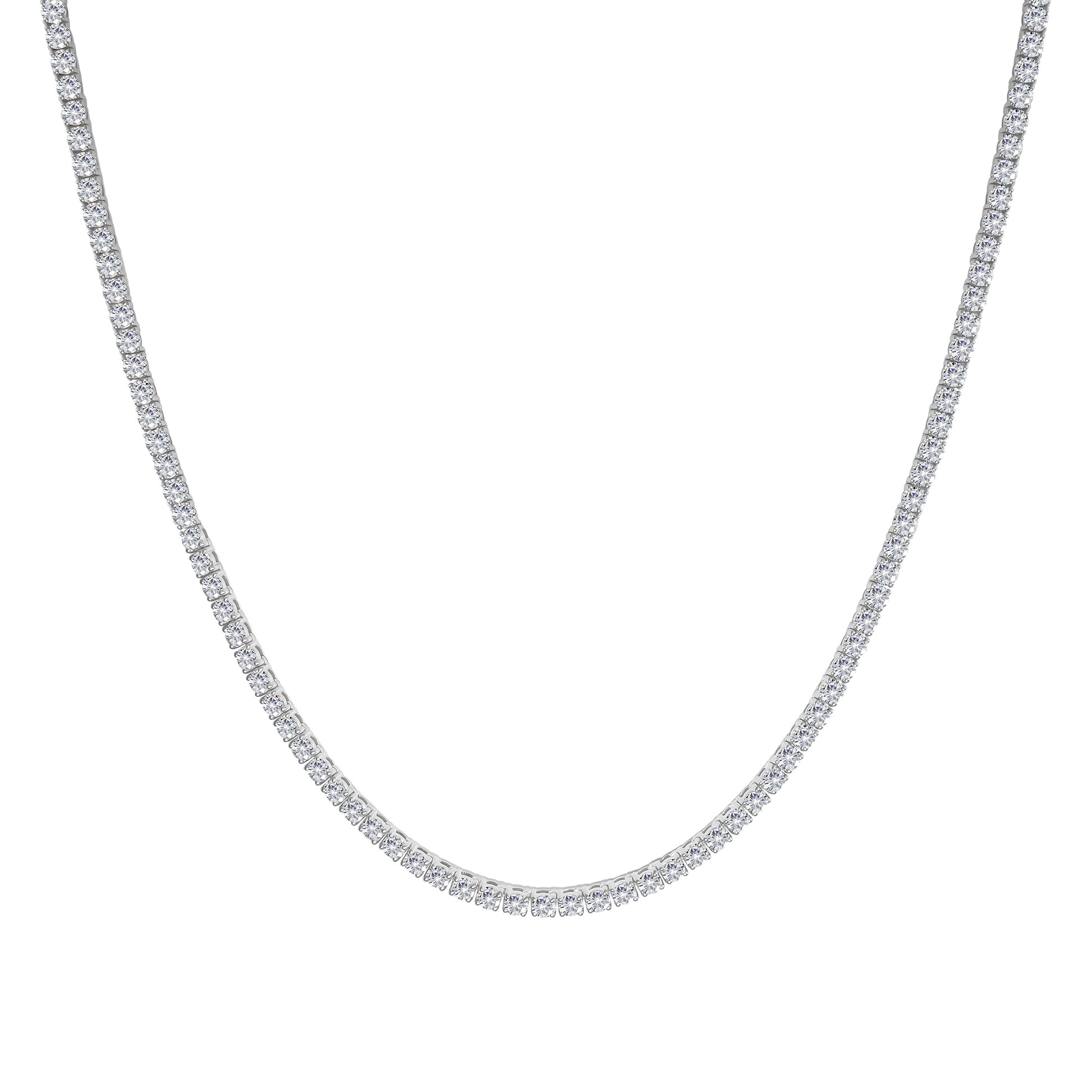 The Giorgio Necklace is an impactful statement piece. This 4 prong tennis necklace features Round Brilliant Cut diamonds of equal size to create a brilliant and sparkling necklace. The exceptional quality of diamonds selected for this piece ensure maximum brilliance and fire.