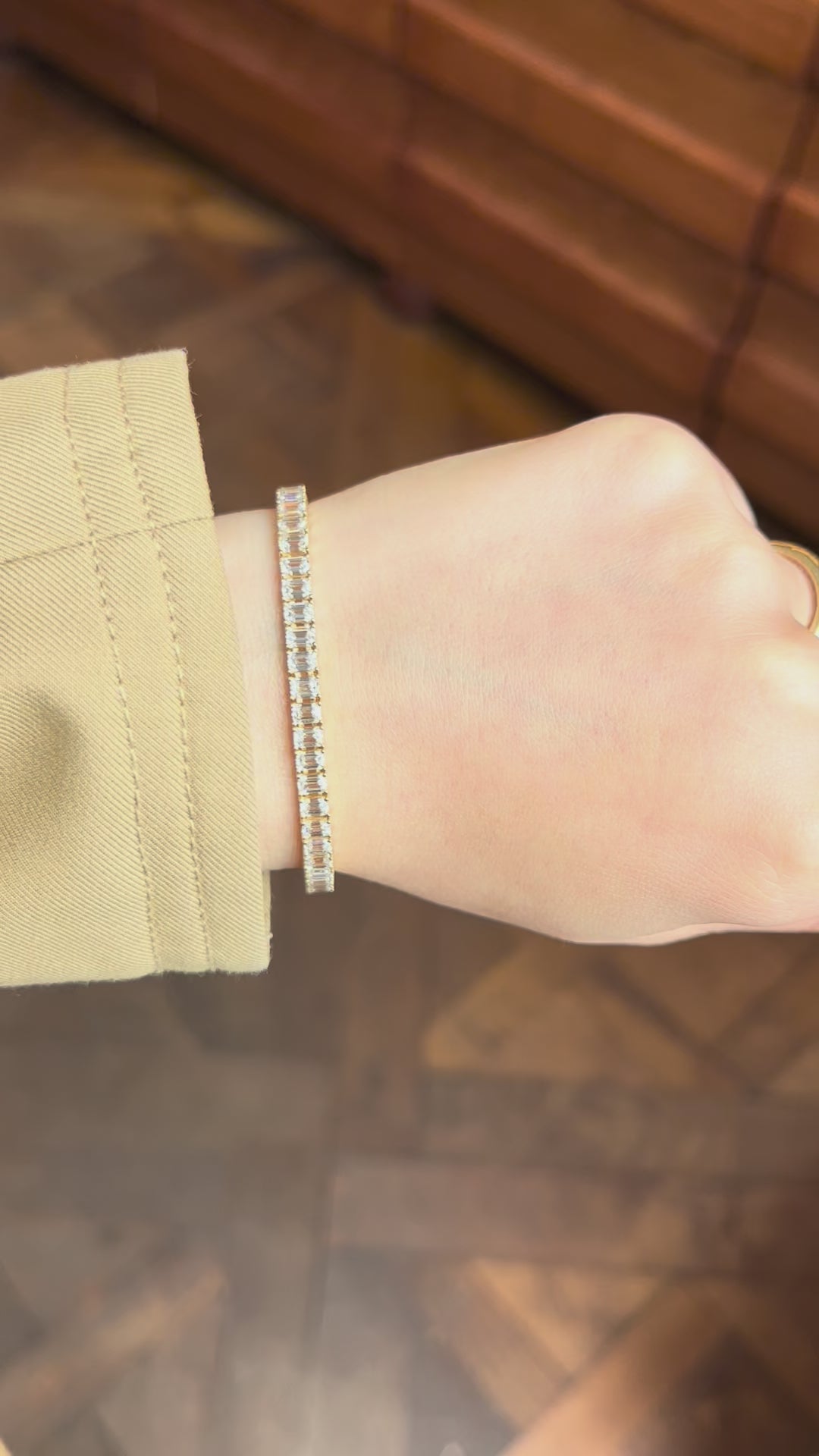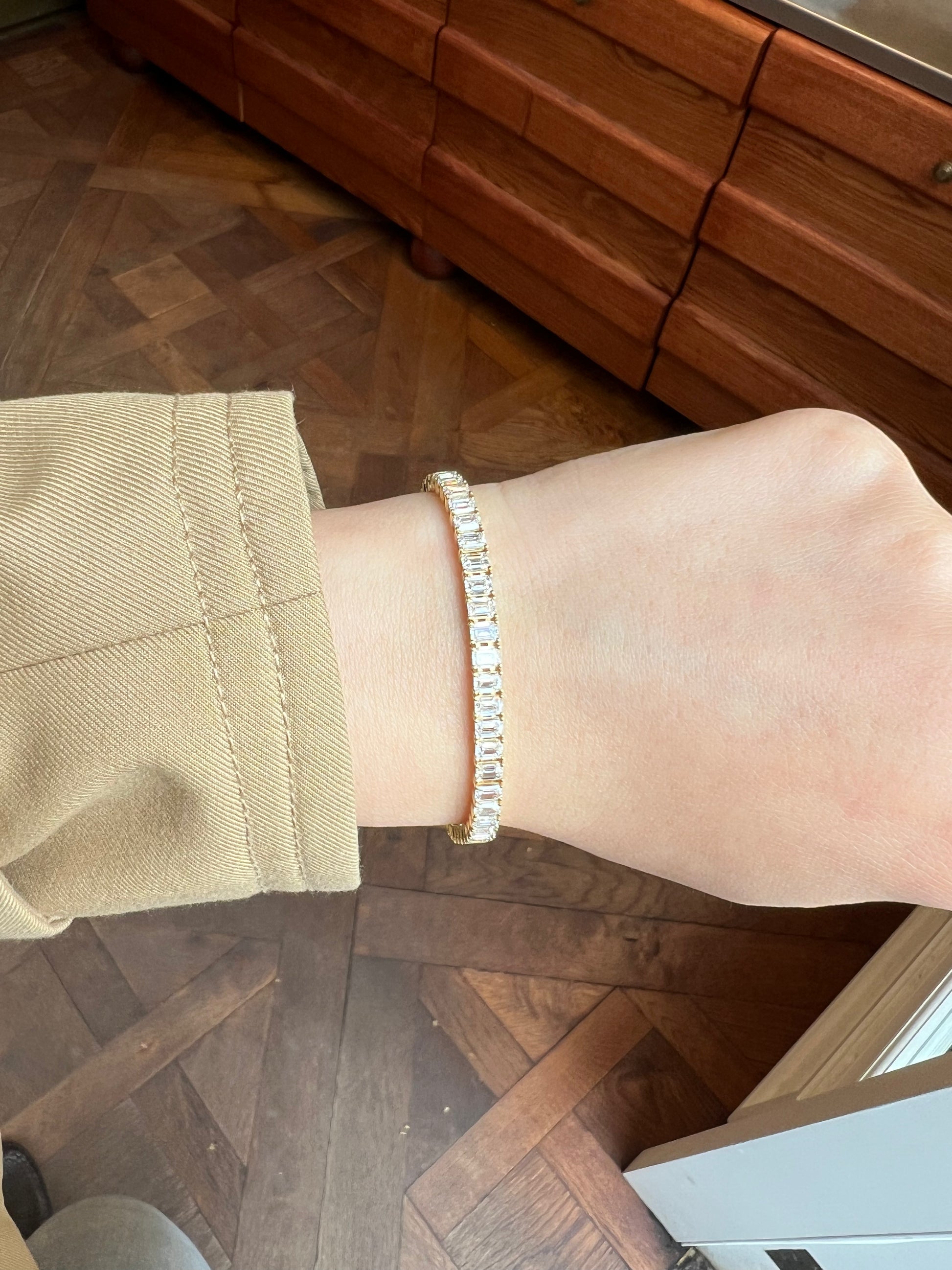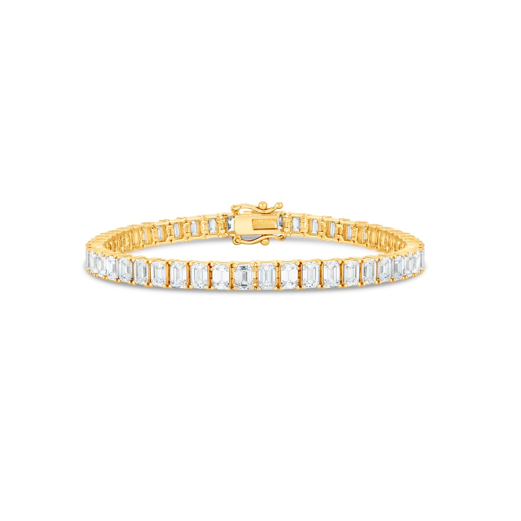 The Henry Bracelet features a continuous line of emerald cut lab-grown diamonds each approximately 0.20ct, totalling to 10.30 carats of precise, step-cut brilliance. Unlike the fiery sparkle of rounds, emerald cuts reflect light in clean, mirrored flashes. Henry is structured, striking, and impossible to overlook.