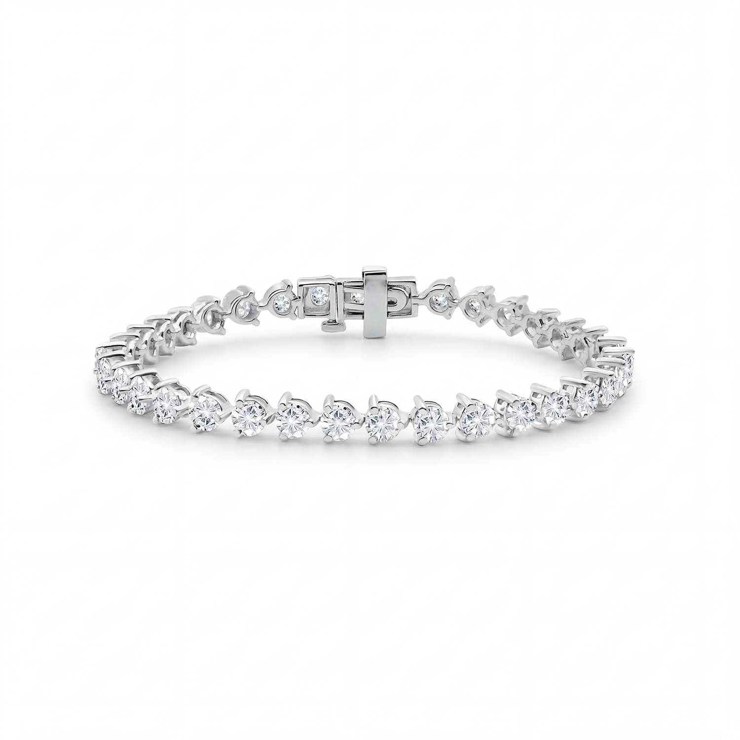 Introducing the stunning Mirella Bracelet - a glamorous addition to your jewellery collection that effortlessly brings sparkle and elegance to any outfit. This chic tennis bracelet showcases Round Brilliant Cut Diamonds in a romantic 3 Prong setting, creating a charming tulip-like effect. Whether worn individually or layered, tennis bracelets are the epitome of luxury and a timeless, stylish must-have for your jewelry wardrobe.