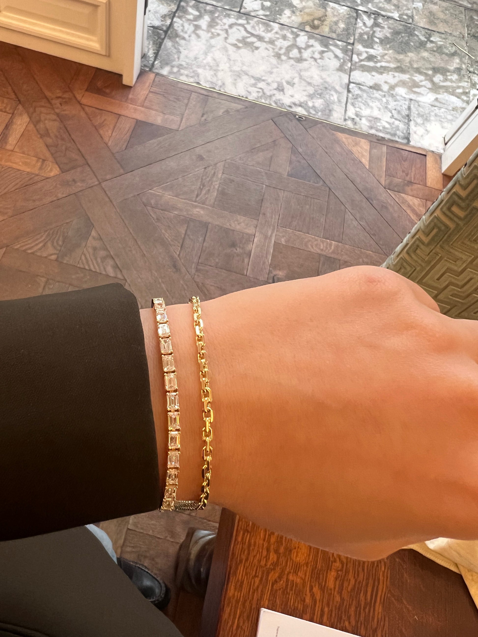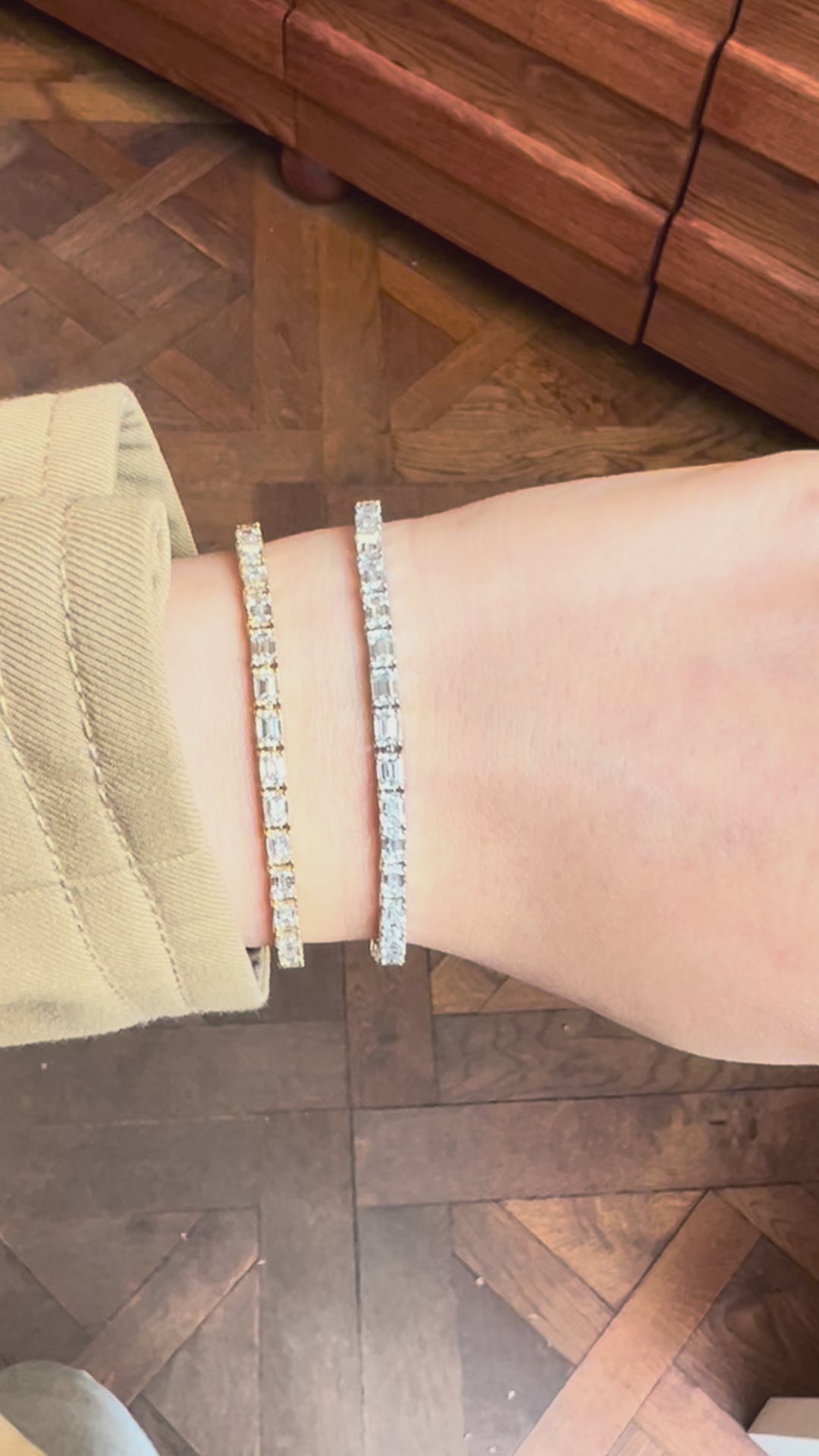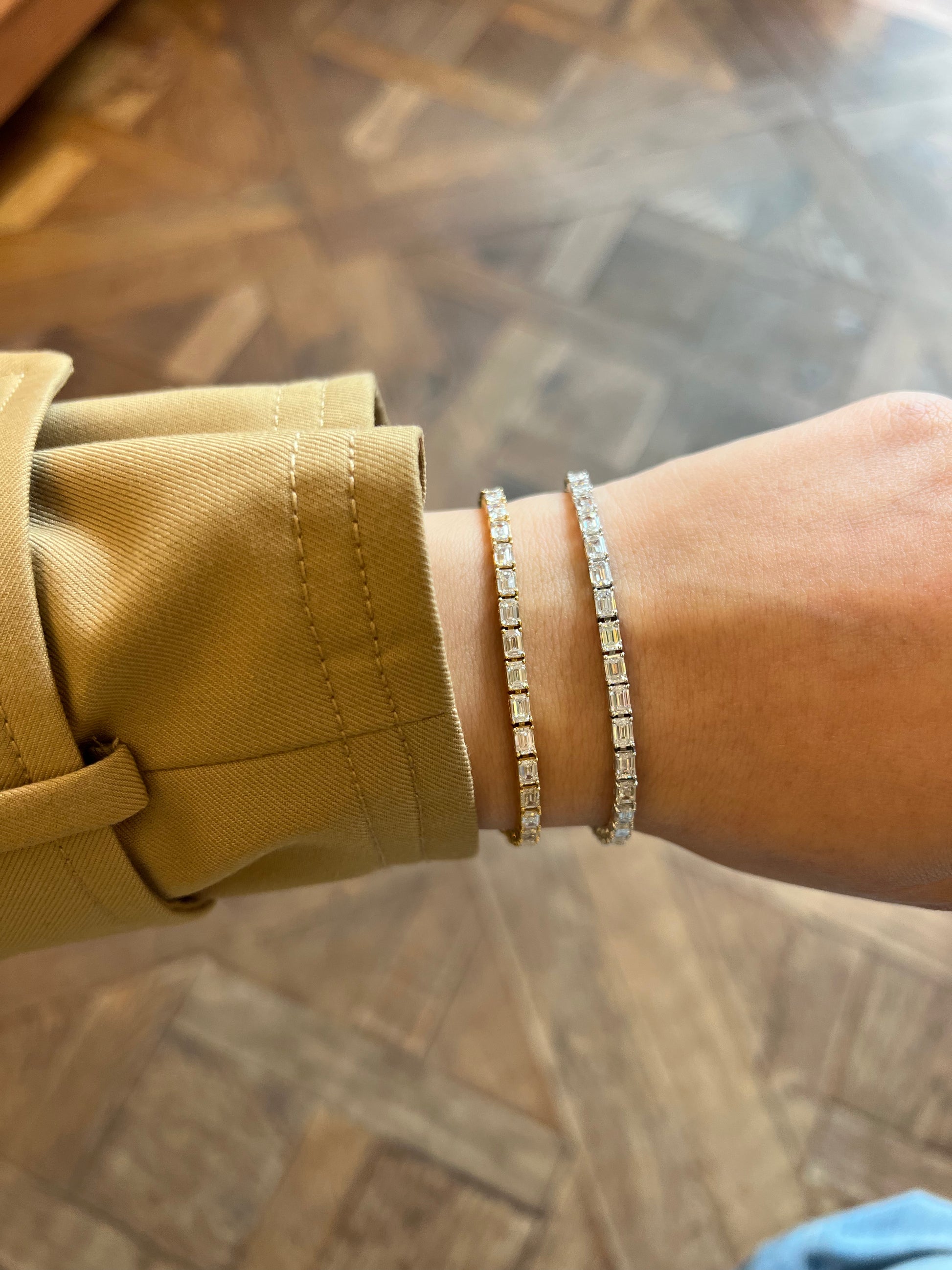The Romana Bracelet reimagines the classic tennis silhouette by setting emerald cut lab-grown diamonds in an east-west orientation. The horizontal alignment accentuates the clean geometry of each step-cut stone, creating a fluid line of light across the wrist. Romana is for the refined and quietly confident.