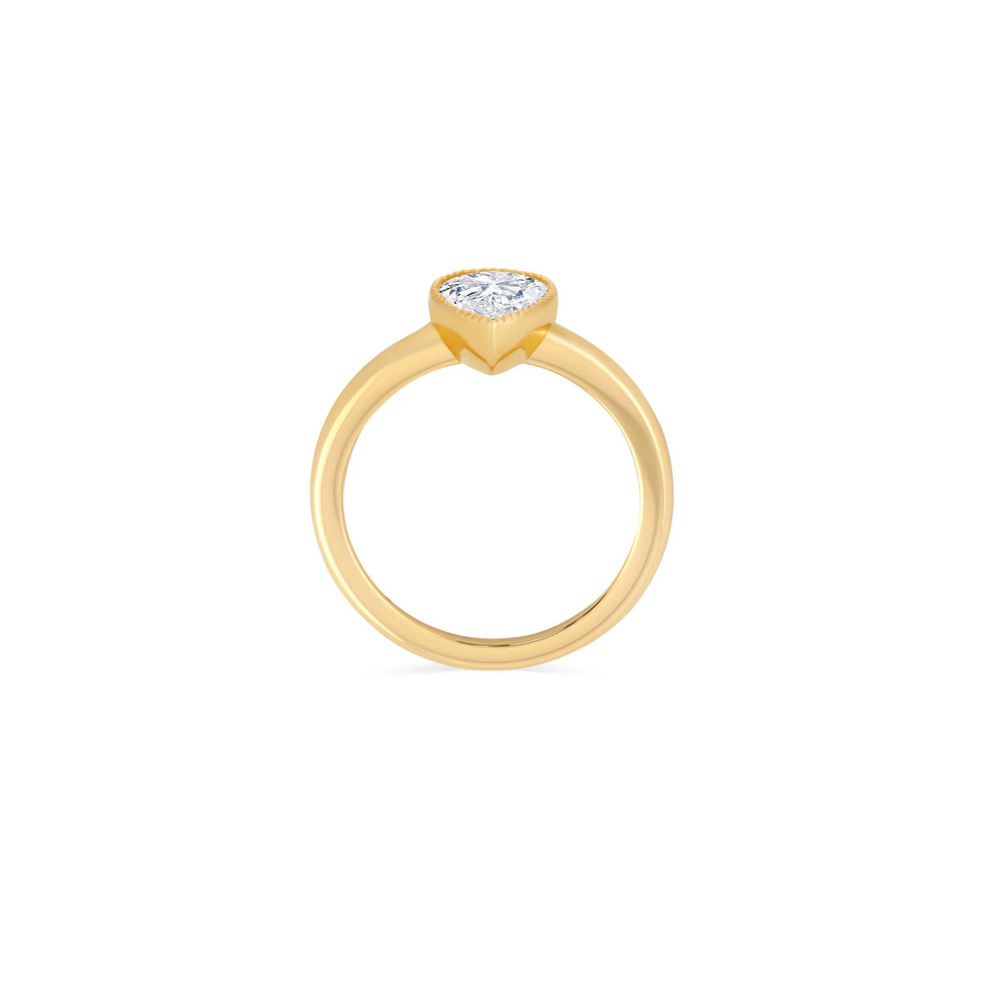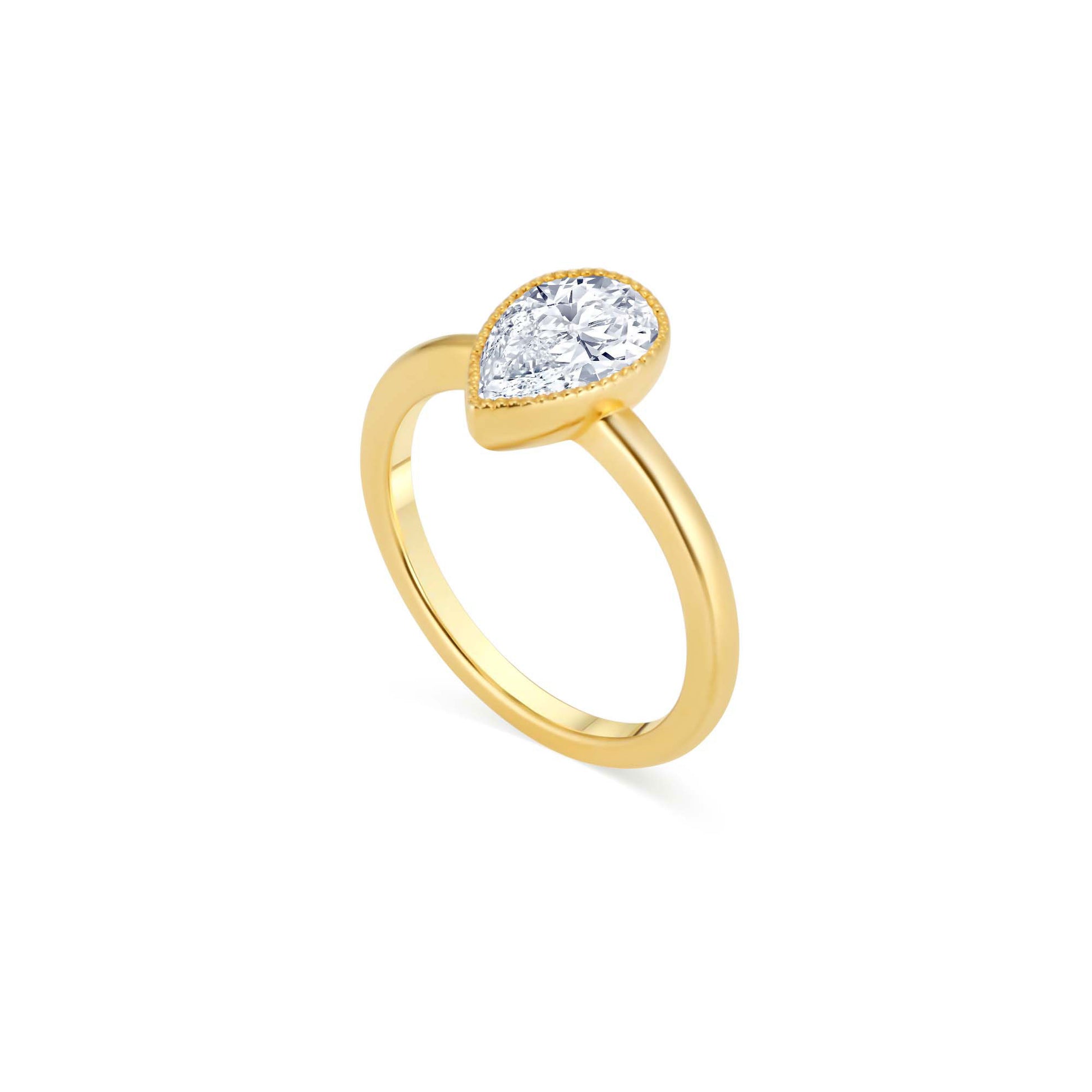 Distinctive and full of character, the Sabrina Ring is a refined solitaire designed for those with a discerning eye. Featuring a GIA Certified Pear Cut Lab-Grown Diamond, its graceful silhouette is framed in a warm yellow gold bezel setting that offers both security and uninterrupted sparkle.