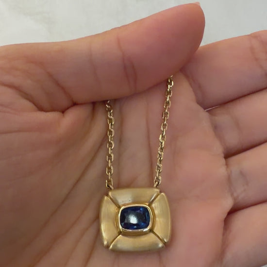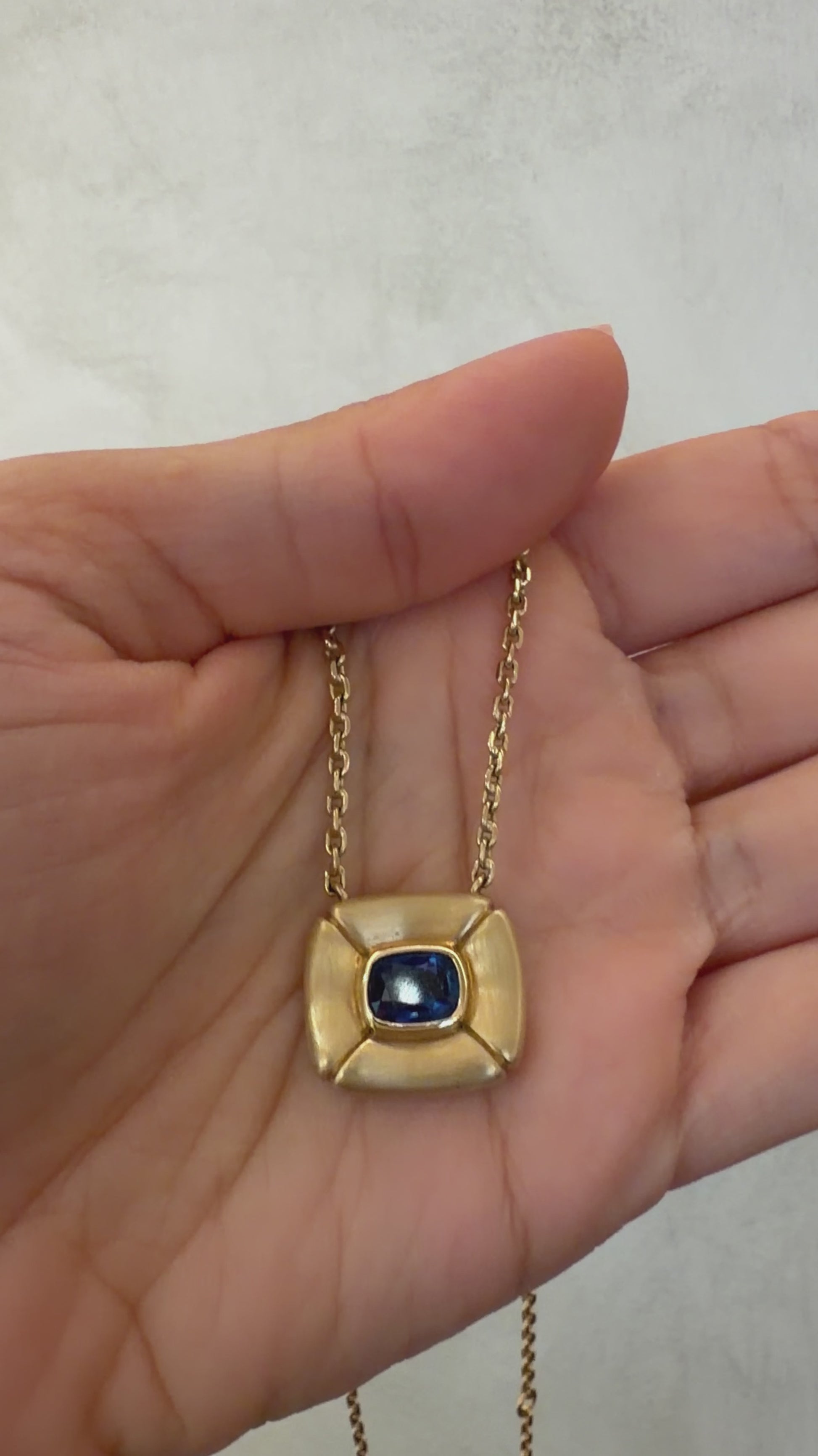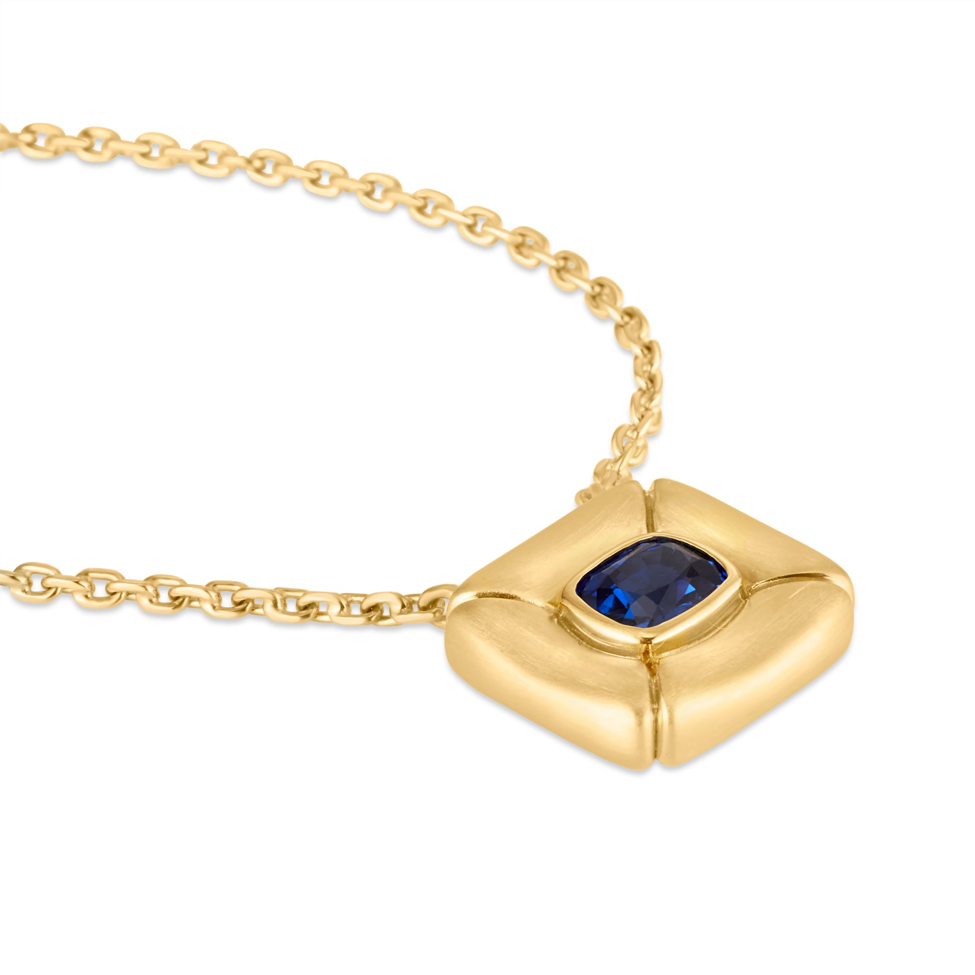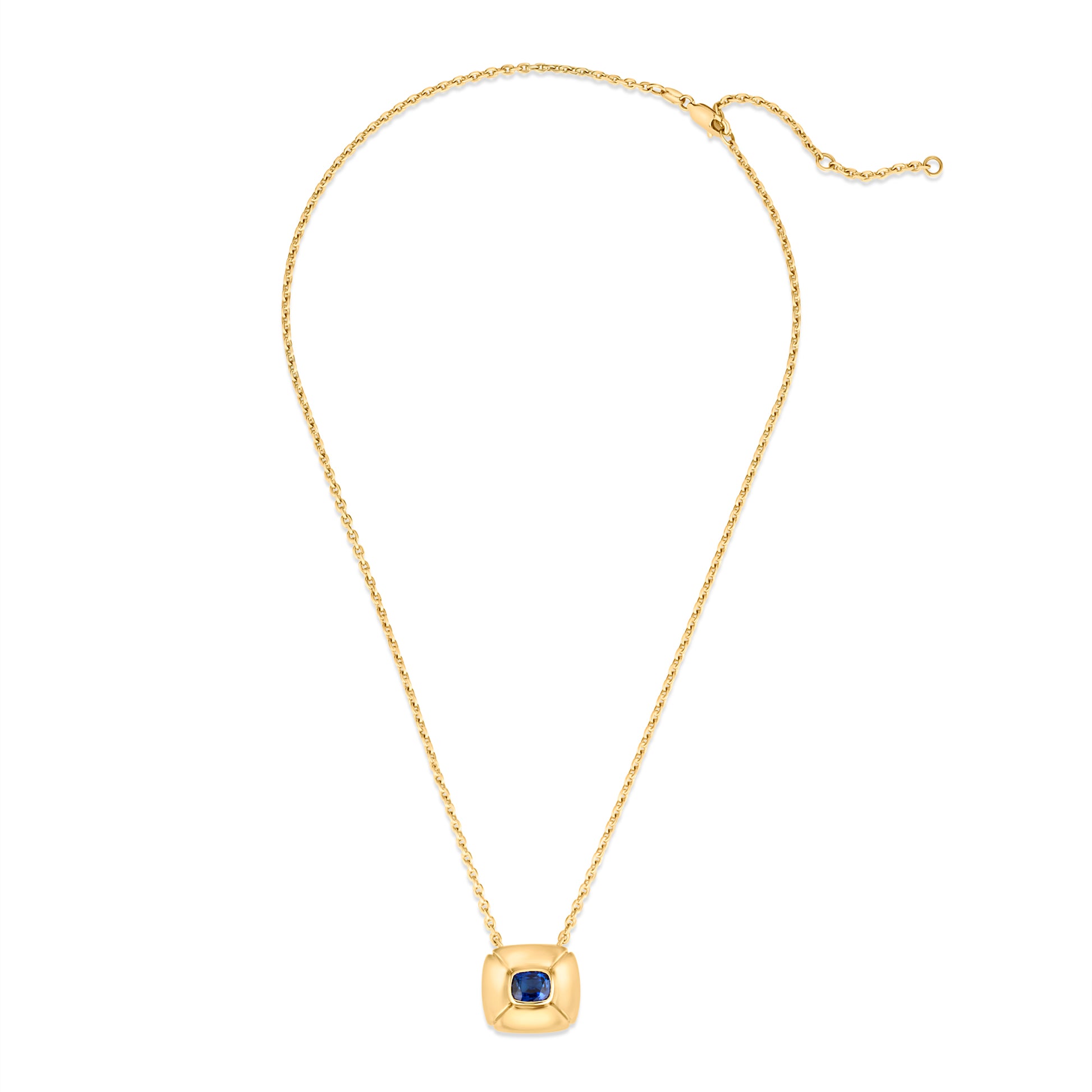 Fantasia is a pillowed sapphire pendant, sculpted in warm yellow gold and guided by imagination. At her centre sits a bezel-set, certified Ceylon sapphire - a stone long associated with intuition, clarity, and inner vision.