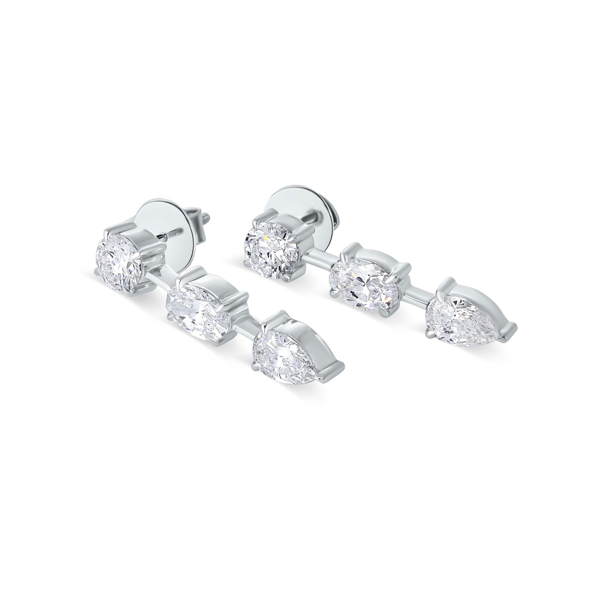 Fancy Cut Lab Diamond Drop Earrings in White Gold.