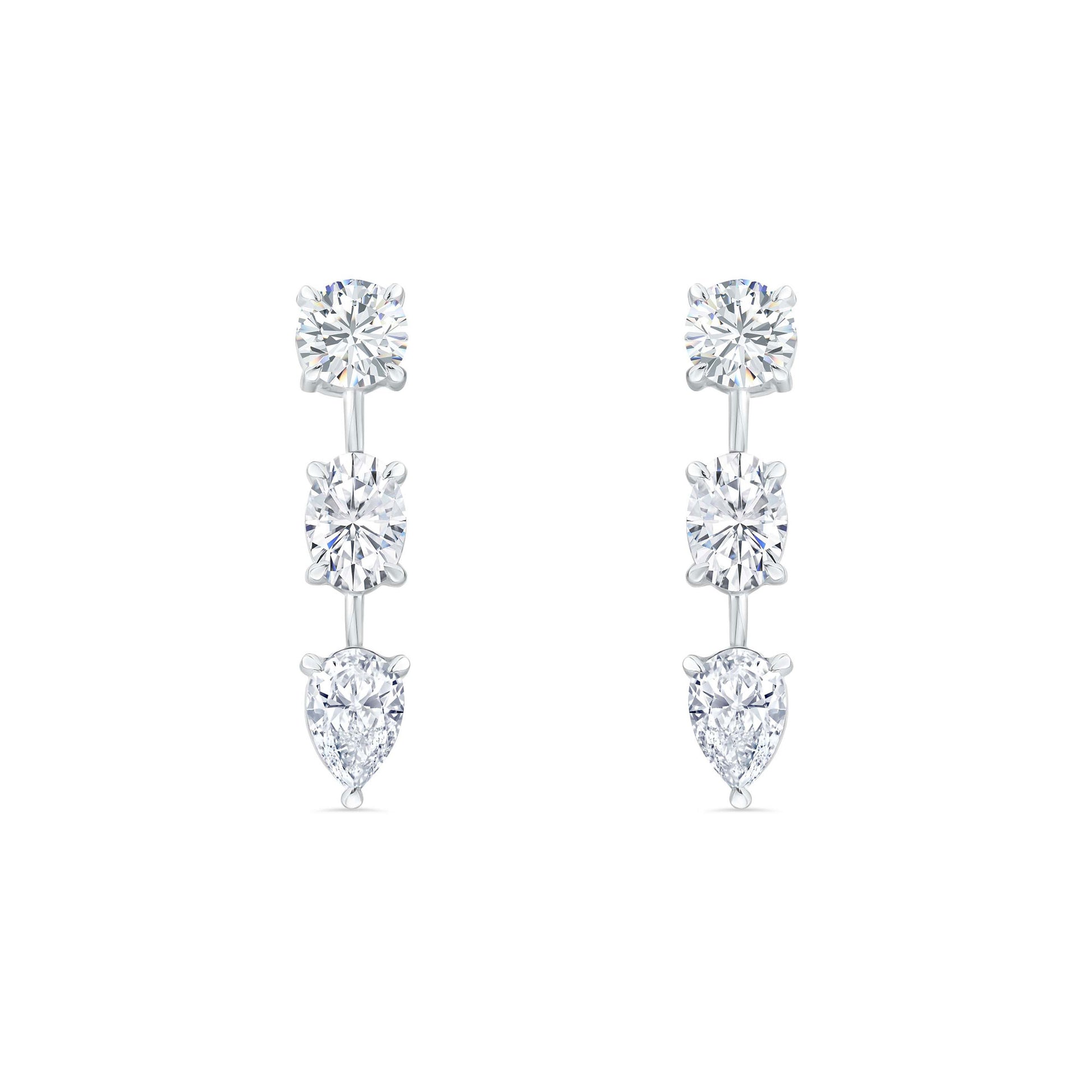 Indulge in the sophistication of the Venezia drop earrings. Adorned with a captivating array of Round Brilliant Cut, Oval, and Pear shaped lab diamonds set in 14ct White Gold, these 3.09 carat gems are the ultimate showstoppers, effortlessly elevating any outfit from casual to glamorous. They feature threaded posts to keep them secure.